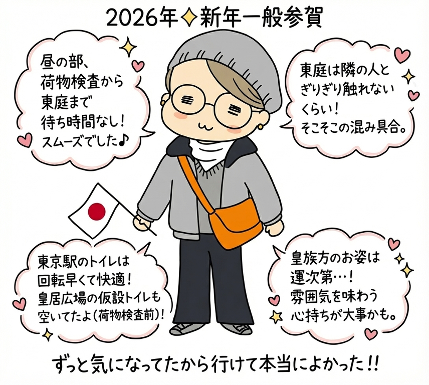 1月2日、新年一般参賀で皇居へ赴きました。きっかけは2010年に年越し番組観覧のため山口から上京した際、バスの中から皇居に並ぶ人々を見たことでした。 いつか私も行ってみたい…と思いながら16年目にしてようやく重い腰をあげました。