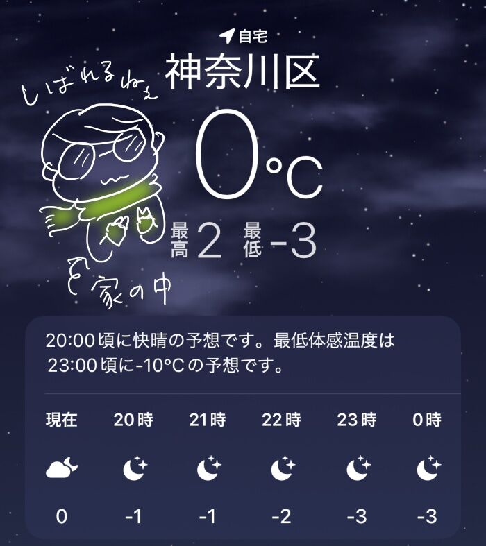 もしこれに沖縄冬仕様で絶えず風が吹いたらもうダメ~。風がないのは救いだった。寒冷地には住めないと確信…。