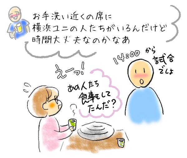 私達と同様にこれから帰る組かと思いきや、彼らの会話からすると、14時開始のデイゲーム前に寄ったようだ。