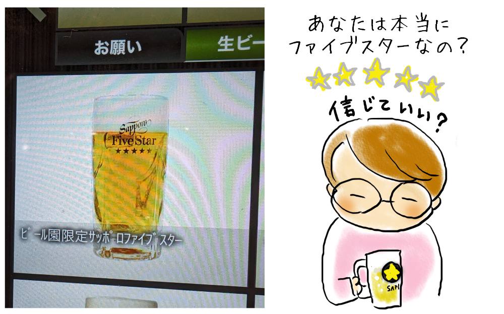 サッポロビール園限定ビール「ファイブスター」。1967年に発売、エビスビール発売に伴い1972年終売、同園の創業40周年を記念して2006年より復刻販売。