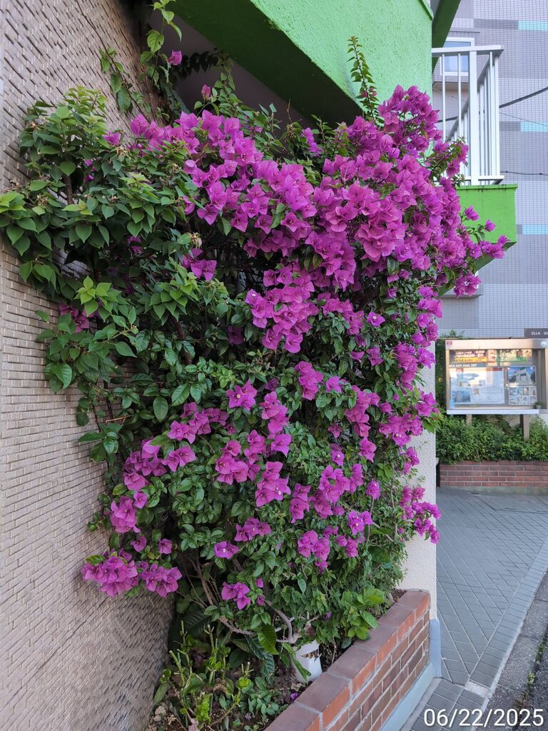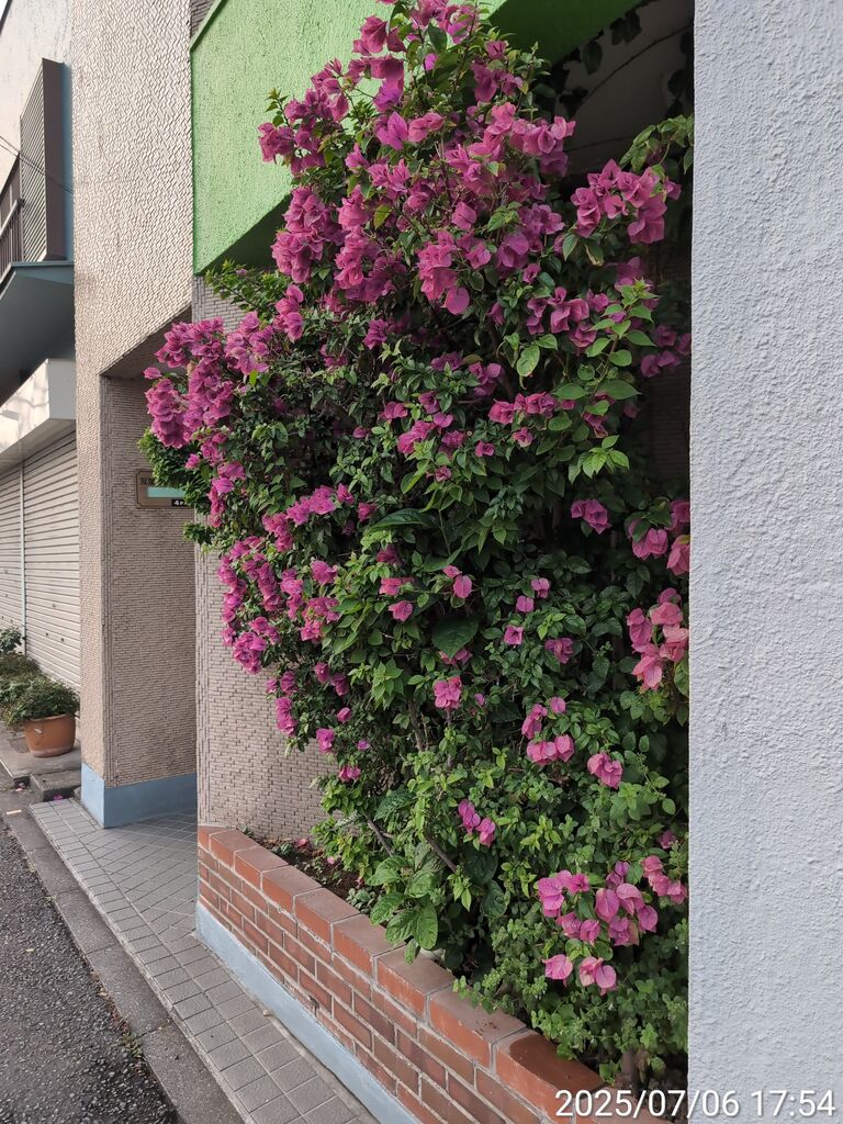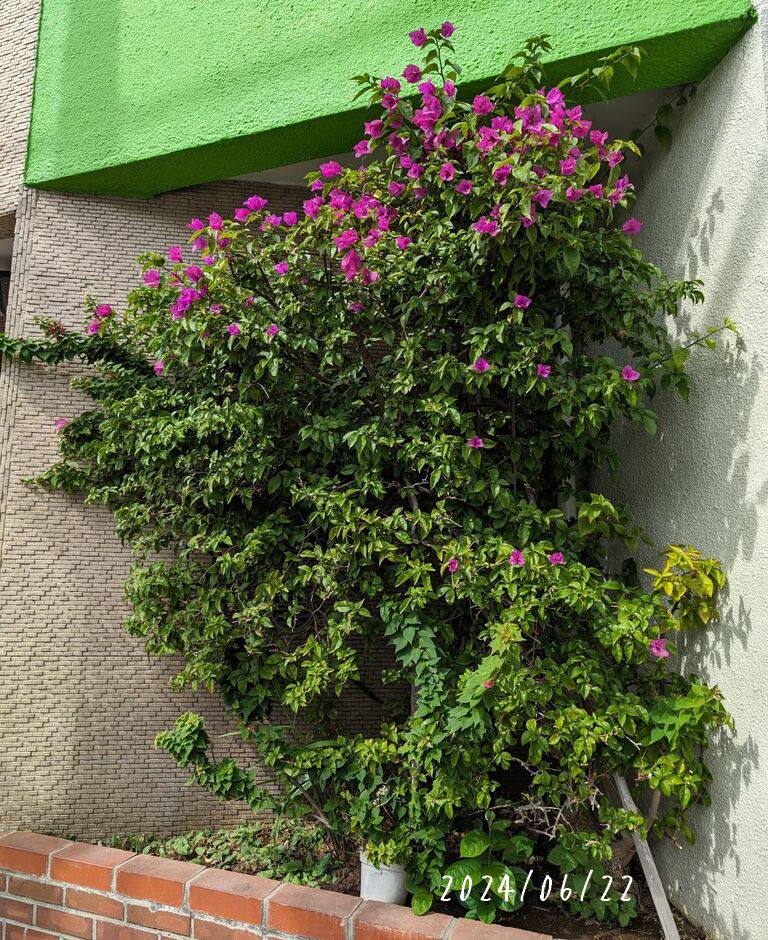 いつも6月に見頃を迎える近所のブーゲンビリア。