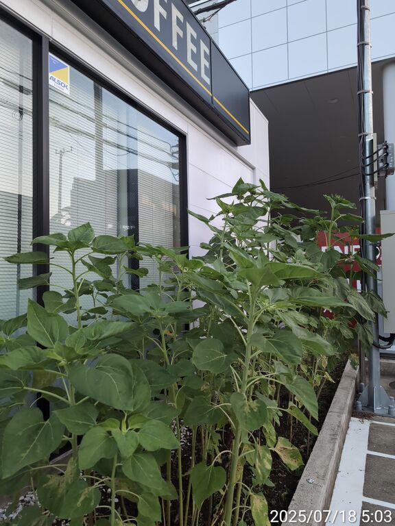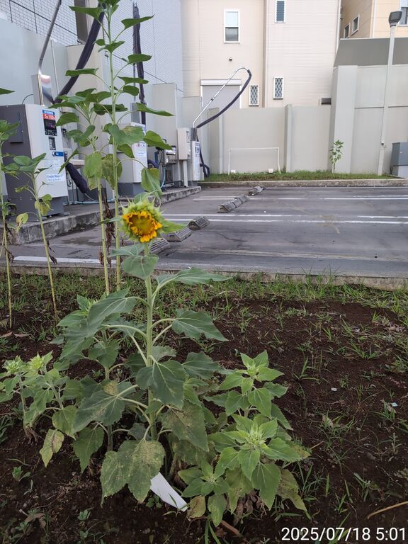 ひまわり長身ゾーンはつぼみの観察が難しくなってきたが、ますますの成長が楽しみだ。