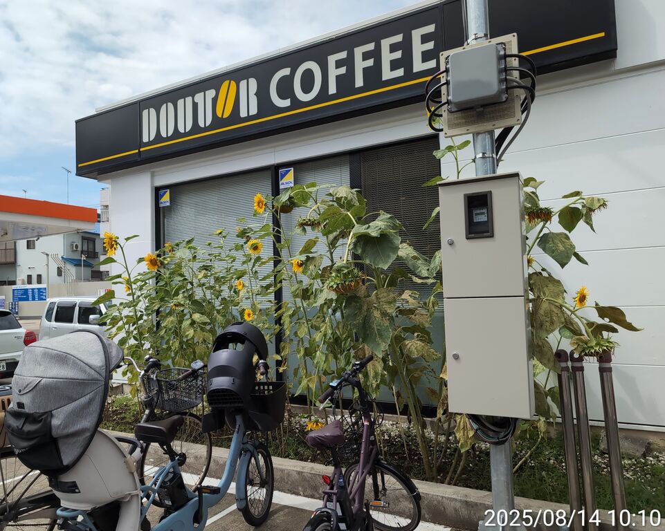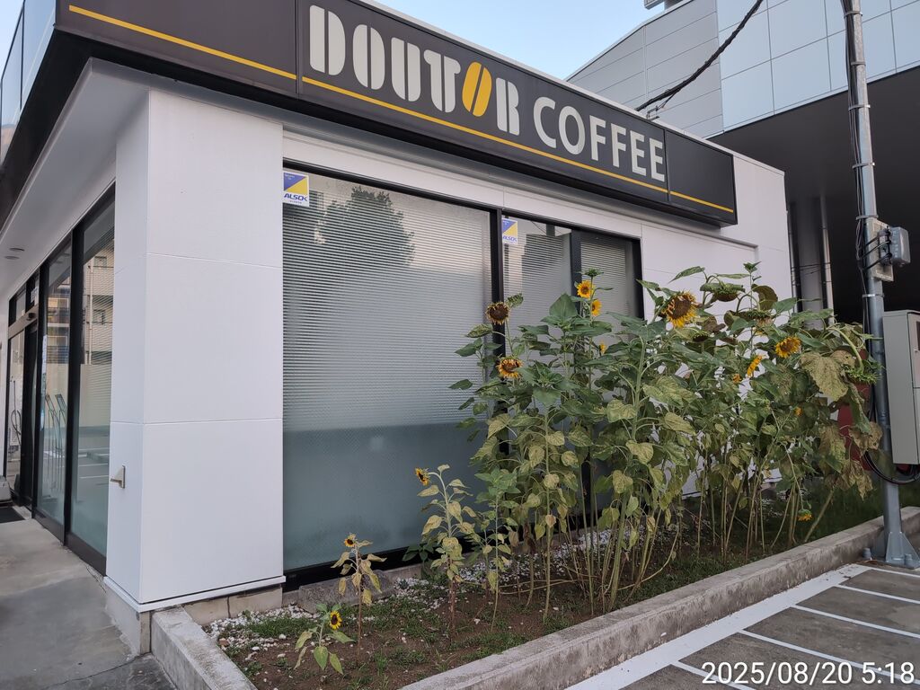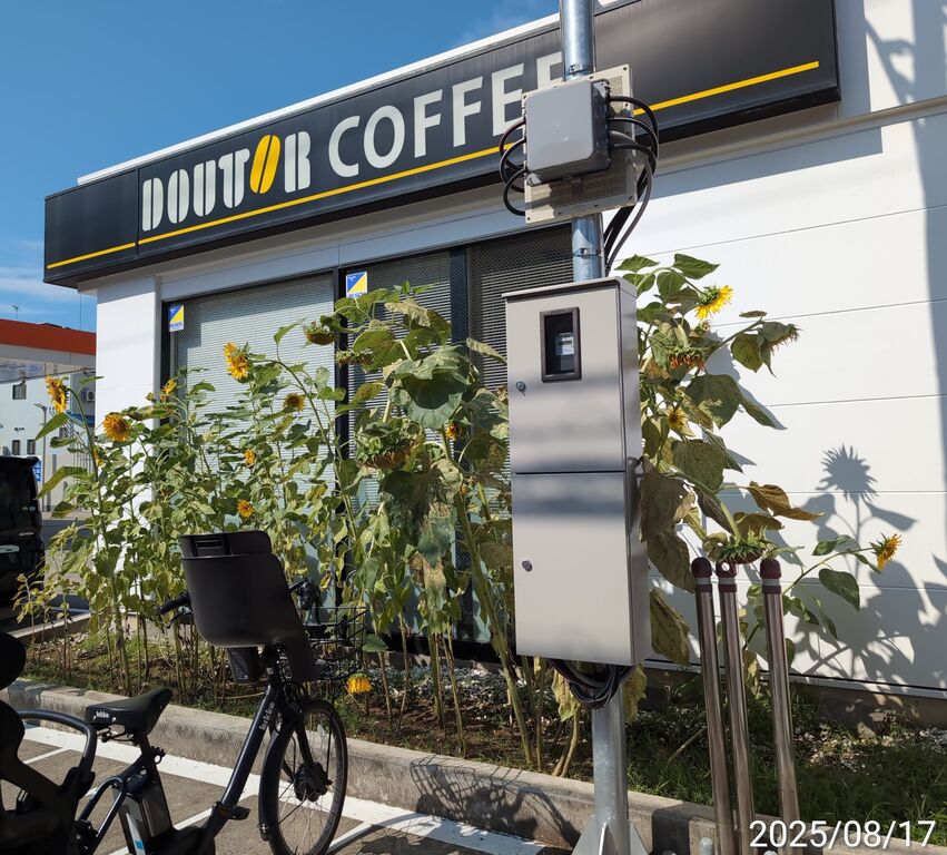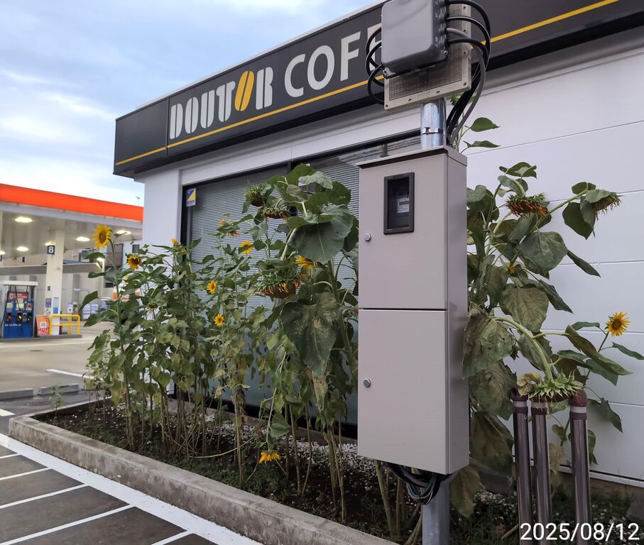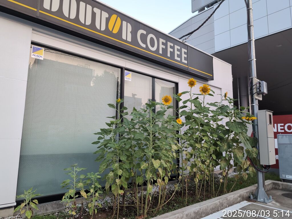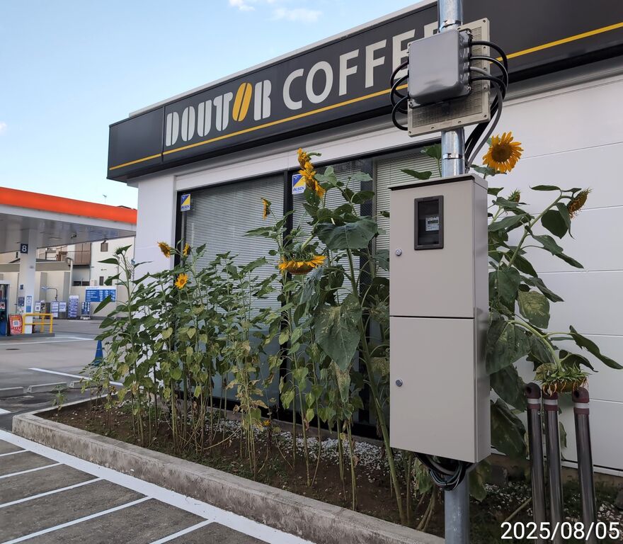 ガソリンスタンド側と孤高のひまわり