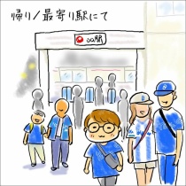 試合開始1時間を切るころの横浜駅にて。ハマスタ観戦の皆さんは意外と正体を隠しがち。最寄り駅に着いた途端、いきなり増えるのでどのタイミングで着ているのだろうか。改札を出た瞬間に早着替えだろうか。私は球場の席で着ている。ハマスタから10キロ以内にある我が家への帰 ...