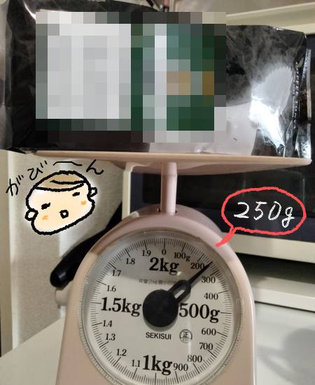 2回めの購入時に「300g」を計測してみたところ、ショックなことが判明した。