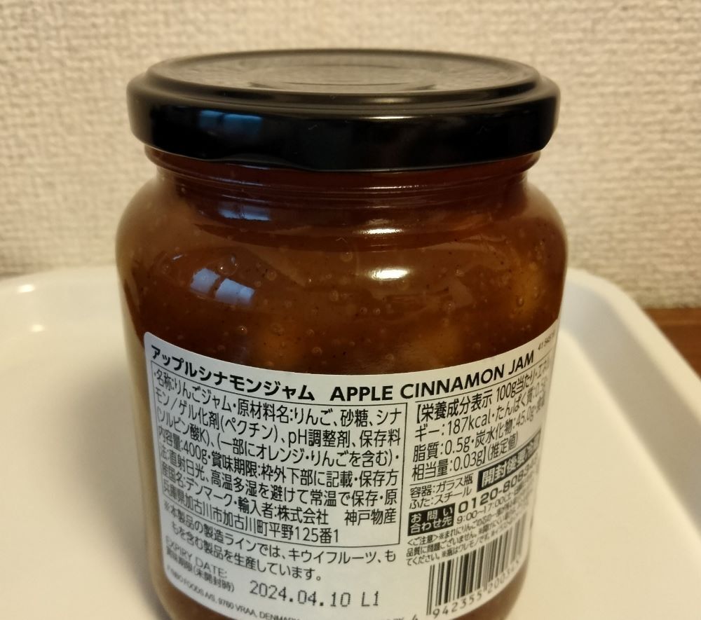 というわけで、今回はパンのおともにチーズをやめてジャムを買ってみた。目に止まったのは「アップルシナモンジャム」(税抜¥248)。